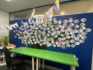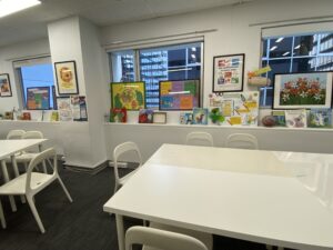 チャイルドケアコースのあるフロアは、学生さん達の制作したものが飾られています。